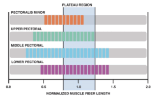 במחקר הנוכחי נטען שהכתף האמצעית והחזה אכן פועלים על פני כל טווח העקומה, ולכן ייתכן שמראש אין יתרון ביולוגי מובהק לאימון באורך קצר או ארוך שלהם, מה שמתיישב היטב עם העובדה שלא נצפה הבדל בהיפרטרופיה בין המצבים. אולם אני לא בטוח שזה אכן המצב מאחר שגם שרירי החזה (למעט הפקטורליס מינור) וגם שרירי הדלתויד (למעט הכתף האחורית), יכולים לעבוד בחלק היורד של עקומת האורך מתח ולכן תיאורטית יכולים להרוויח מעבודה במצב שריר ארוך יותר: