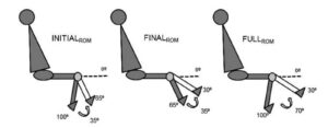 טווח תנועה מלא כאשר שיא העומס מתרחש כשהשריר במנח ארוך או קצר (בפועל מדובר על שינוי בזרוע העמסה שמשנה את דרישת המומנט השרירי אבל נכתב ״שיא העומס״ לצורך פשטות):